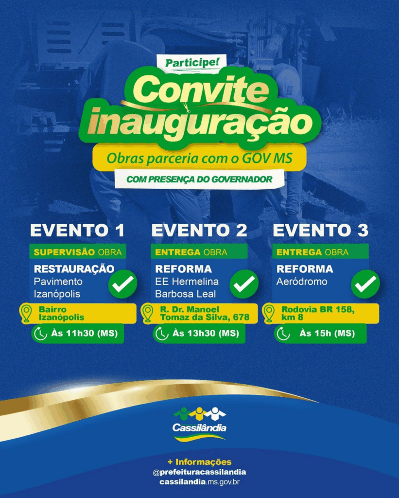 “É um momento importante para Cassilândia. Convidamos os moradores para acompanhar tanto no aeroporto, quanto na Escola Hermelina Barbosa Leal.”