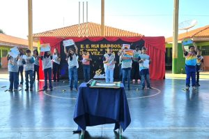 A Escola Estadual Rui Barbosa, em Cassilândia, transformou a rotina escolar em um verdadeiro espetáculo de arte e criatividade durante a realização do 15º Sarau Literário. Com o tema “Era uma vez… uma canção”, o evento encantou a comunidade escolar ao unir o poder da literatura com a magia da música, proporcionando momentos de emoção, diversão e reflexão.